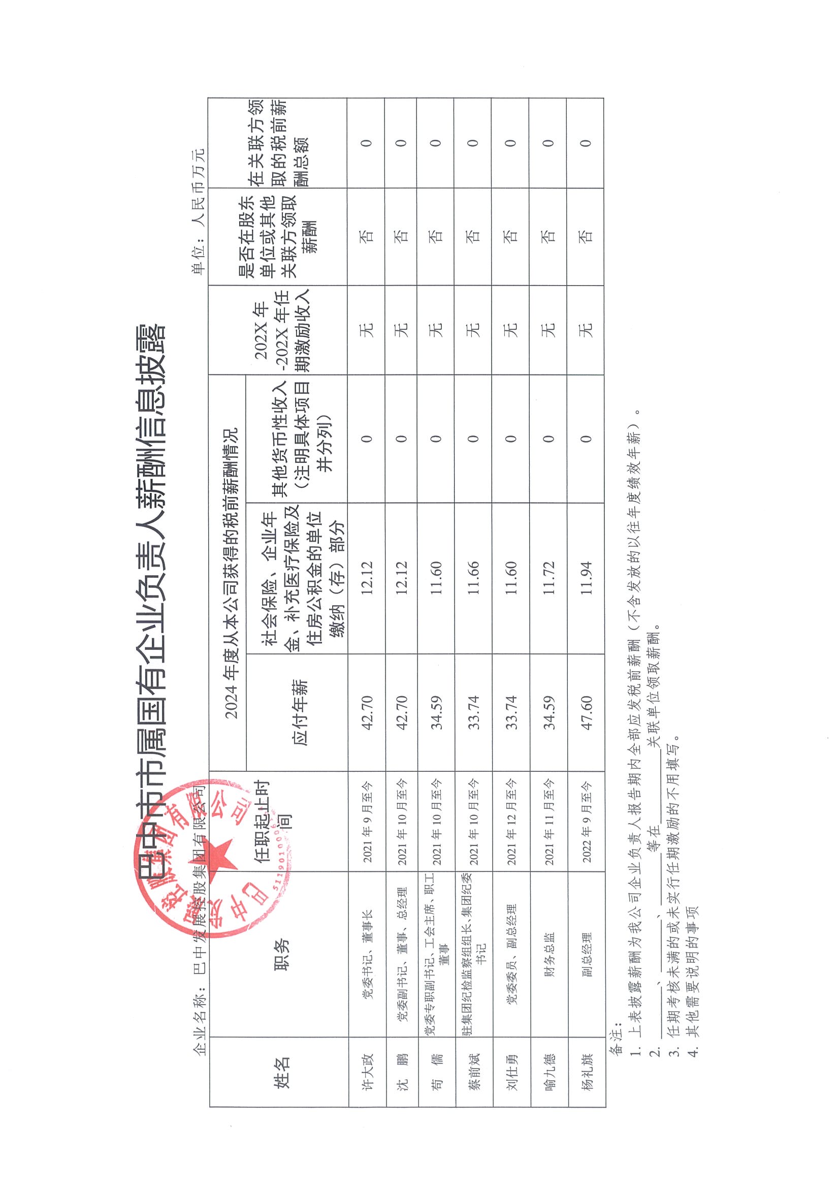 巴中市市屬?lài)?guó)有企業(yè)負(fù)責(zé)人薪酬信息披露