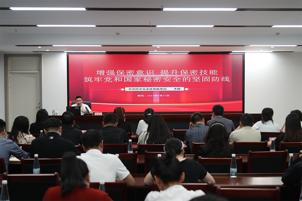 為進(jìn)一步提高國(guó)企干部職工的保密素養(yǎng)和能力,9月19日,巴中發(fā)展集團(tuán)開展保密工作專題培訓(xùn),市委保密機(jī)要局科技測(cè)評(píng)中心主任李健應(yīng)邀授課,集團(tuán)本部全體職工、下屬企業(yè)分管領(lǐng)導(dǎo)及相關(guān)部門員工共60余人參加培訓(xùn)。