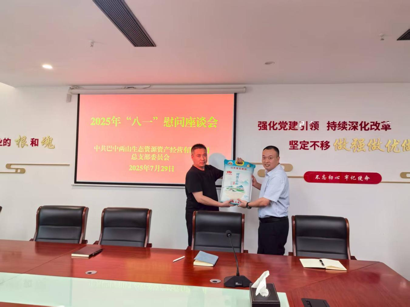 為深入學習貫徹習近平總書記對雙擁工作的重要指示精神,傳承和弘揚擁軍優(yōu)屬的優(yōu)良傳統(tǒng),激勵退役軍人干事創(chuàng)業(yè)熱情,2025年7月29日,巴中兩山公司開展退役軍人慰問活動。