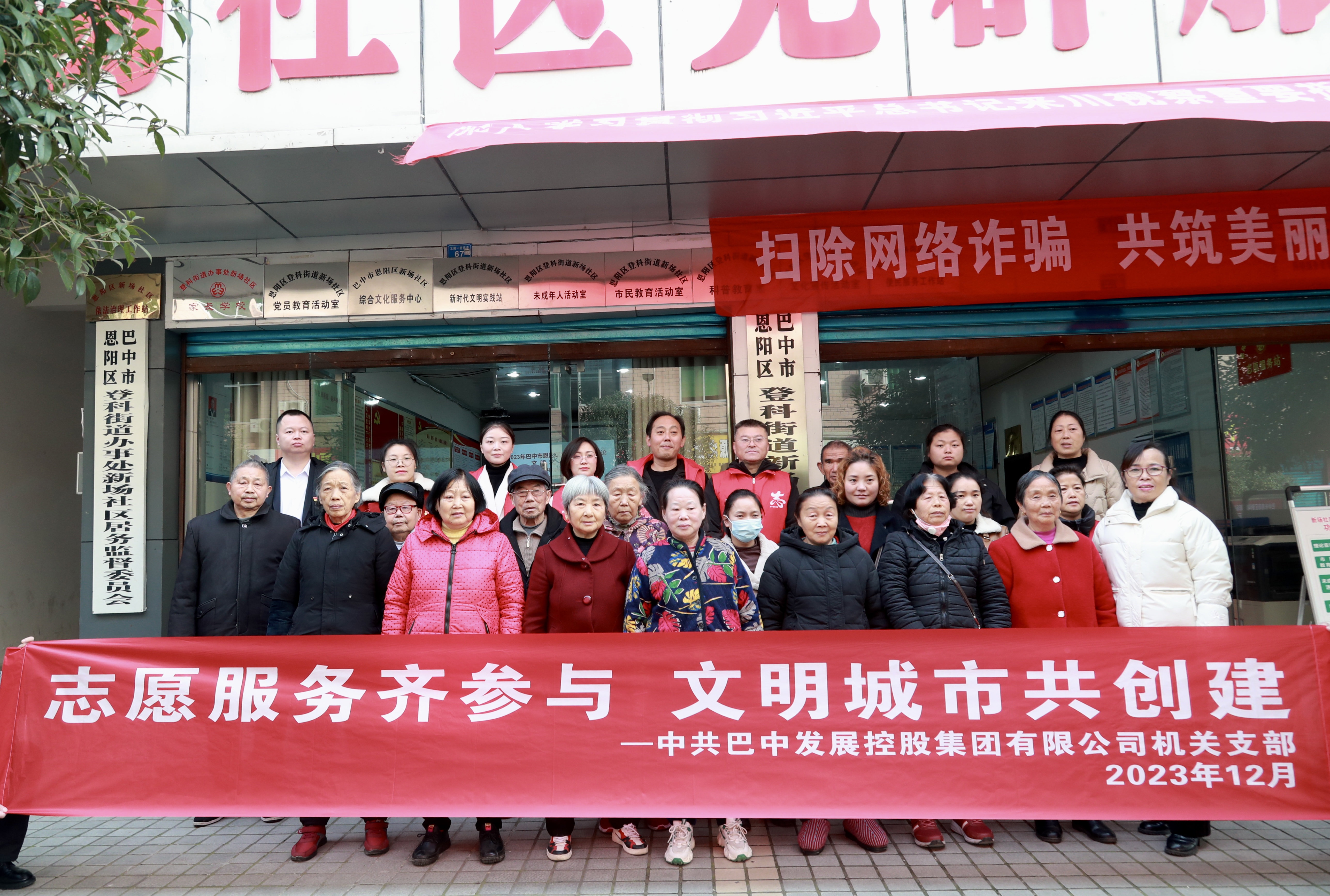 12月8日上午,為深入踐行“四下基層”工作法,積極參與社區(qū)治理、有效服務(wù)群眾,助力文明城市建設(shè),巴中發(fā)展控股集團有限公司機關(guān)支部組織黨員到恩陽區(qū)登科寺街道新場社區(qū)開展“雙報到”暨“志愿服務(wù)齊參與、文明城市共創(chuàng)建”主題黨日活動。